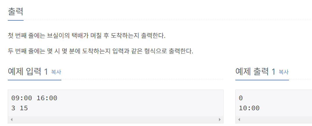 출력으로 브실이의 택배 배송 예상 날짜, 시간을 0일 뒤에 10시00분에 도착한다고 구해보자.