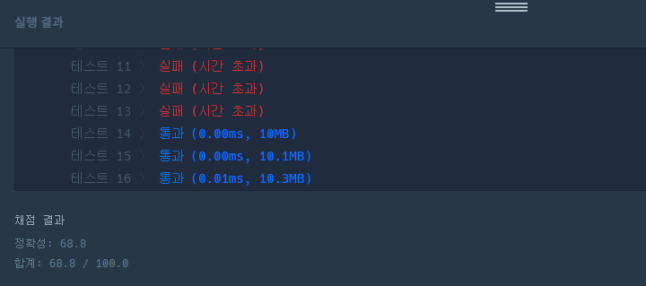일부 테스트케이스가 시간초과가 나왔다.