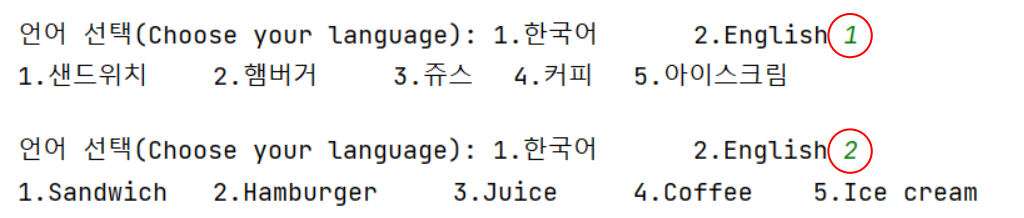 키오스크에서 사용하는 언어 선택 프로그램을 만들어보자.