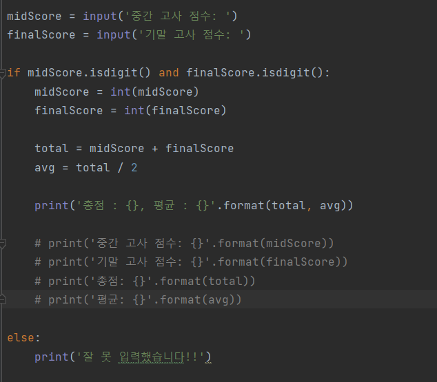 :input에 중간, 기말 점수 지 print 값에 쓸 필요가 없었음