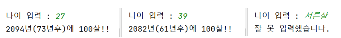 나의 나이가 100살 되는 해의 연도를 구하는 프로그램을 만들어보자.