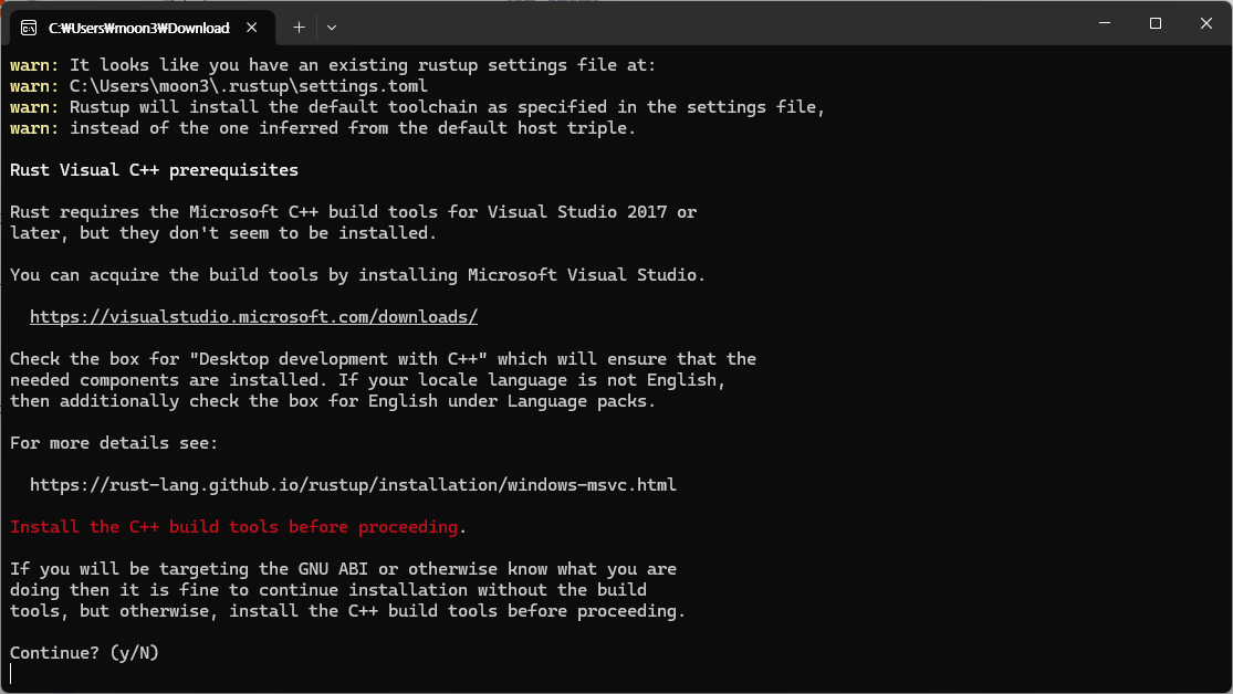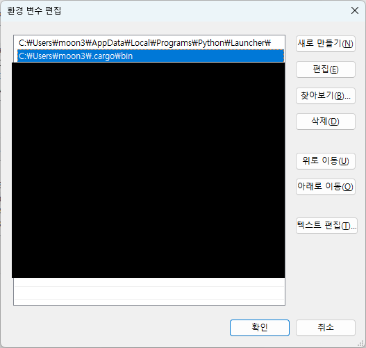 <메인드라이버>:\Users\<유저이름>.cargo\bin 가 있는지 확인