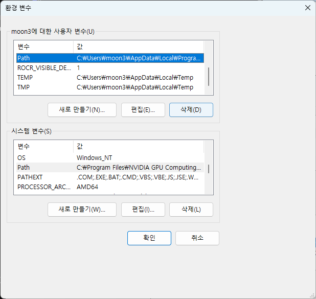 설치완료 (하단에 나온 메시지 대로 환경 변수 편집에서 bin 경로 등록)
