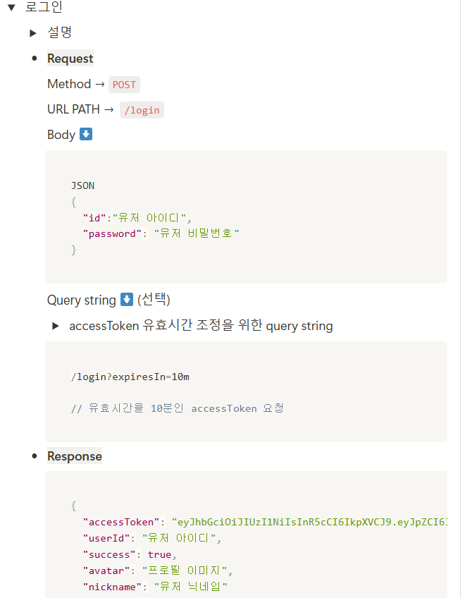 보이는 것처럼 Body에 어떠한 내용이 들어가야하는지 명세서에 자세히 나와 있으며, response로 오는 형태도 다 알려주고 있다. 이를 탕으로 적은 auth.js라는 파일은 완성 시켰다