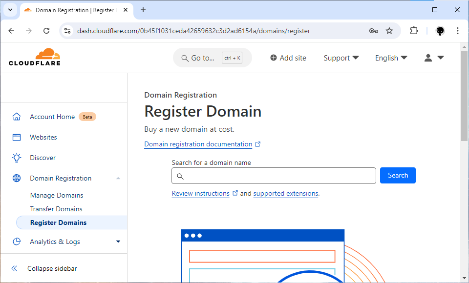 이후 아래 Register Domains 탭에서 도메인을 구매할 수 있습니다.