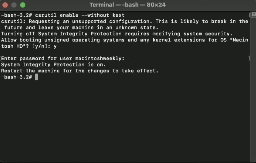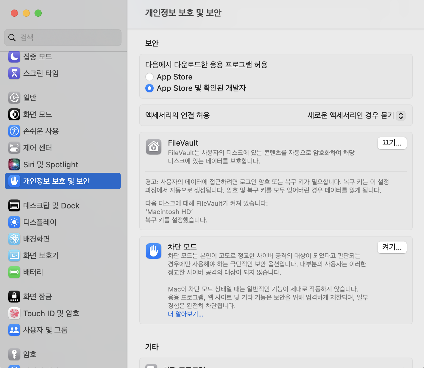 이 뜨면 y 라고 입력한다. (없으면 패스)보안 정책