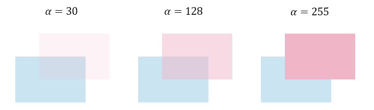 원래 이미지는 RGB 3가지로 표현되지만, 이미지에 투명한 효과를 주거나 이미지를 합성할 때 각 픽셀의 가중치를 제어하기 위해 RGB에 α를 추가하여 RGBA 4가지로 표현한다. α를 추가하여 투명도를 표현할 수 있게 된다.