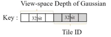 Duplicate With Keys: 각 타일마다 Gaussian의 Key(Depth 값 등)를 생성