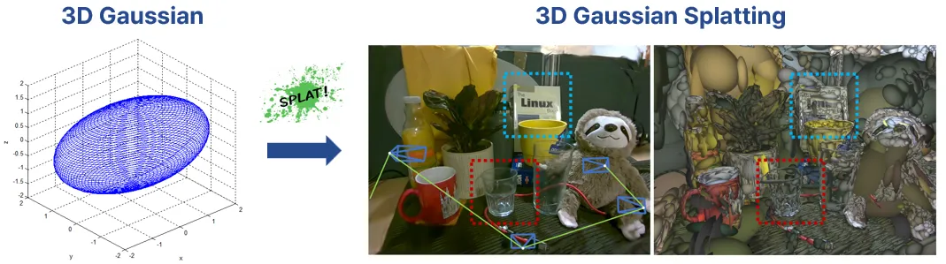 3차원 공간에 있는 점들을 Gaussian 분포로 표현하여 3D 데이터의 밀도와 형태를 효과적으로 시각화하는 3D reconstruction 기법이다.