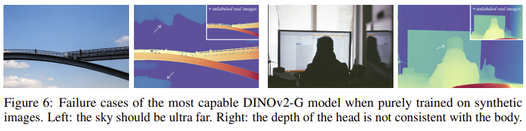 하지만 DINOv2-G도 구름이나 사람 머리를 잘 모델링하지 못하는 문제가 있었다.