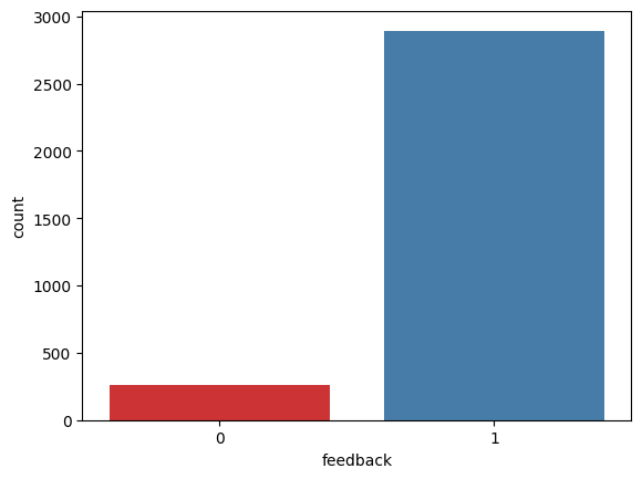 sns.countplot(x='feedback', data=alexa_df, palette='Set1')