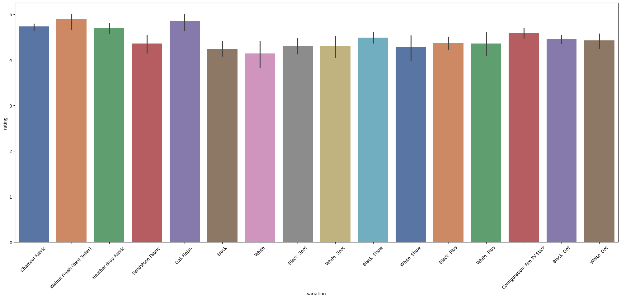 # Use Seaborn barplot to show variations/ratings