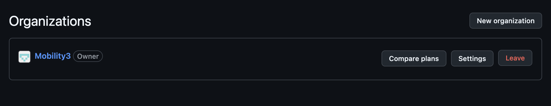 오른쪽 프로필을 클릭 후 your organization 클릭