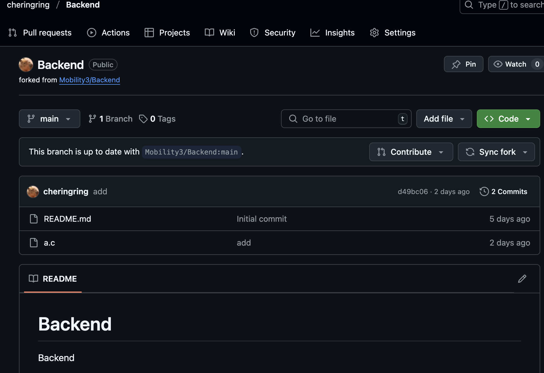 헷갈릴수도 있는데 지금 내 컴퓨터 로컬은 내 개인 저장소(조직 레포를 포크한)을 클론한겁니다.