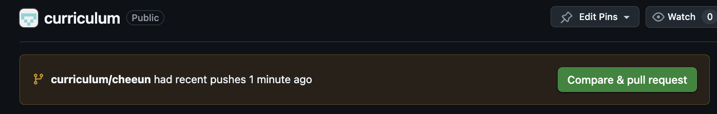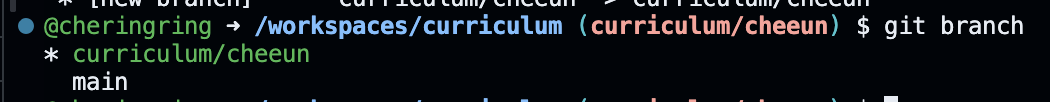 우선 curriculum 레포에 새 브렌치를 생성해보겠다.