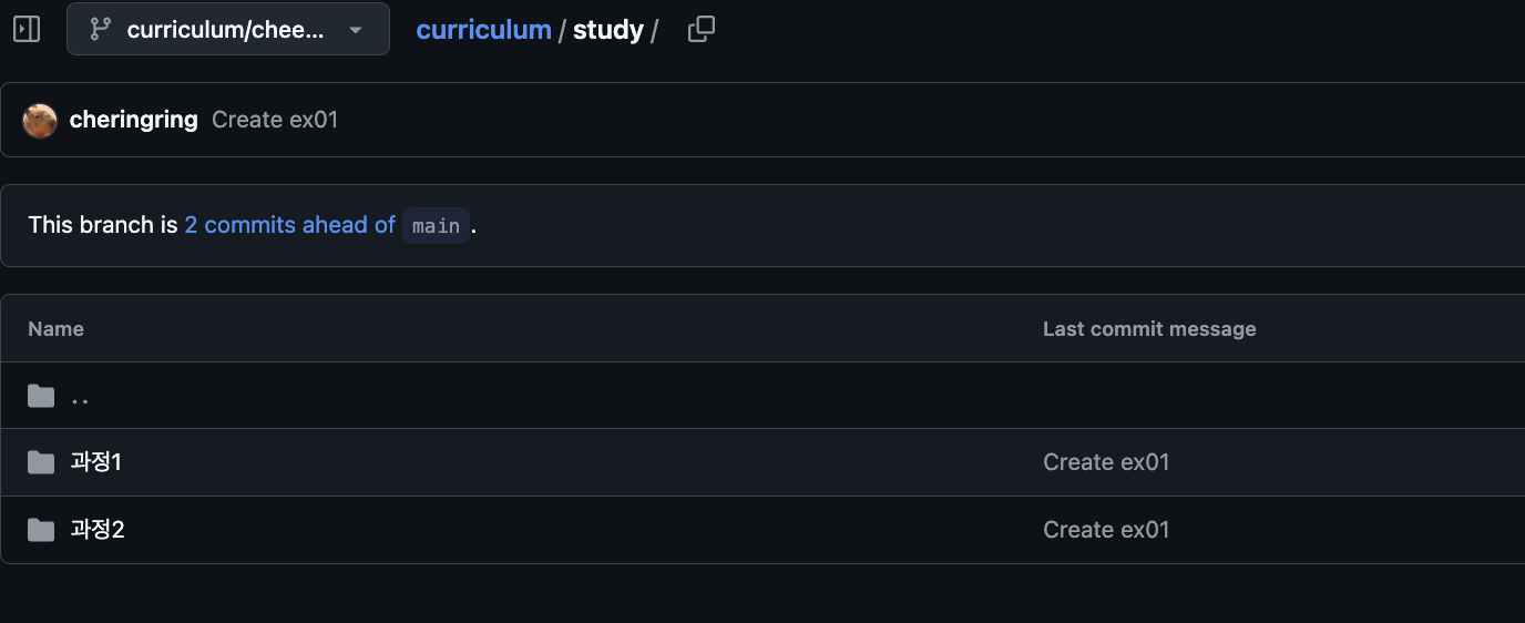 저는 과정문제를 study에 담고, 학습일지를 study_log에 담을 예정입니다. 되도록이면 폴더 이름을 통일하는 게 좋을 것 같습니다.