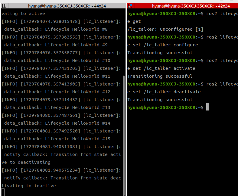 | set | <node_name> <state> | 특정 노드의 lifecycle 상태를 설정 | |