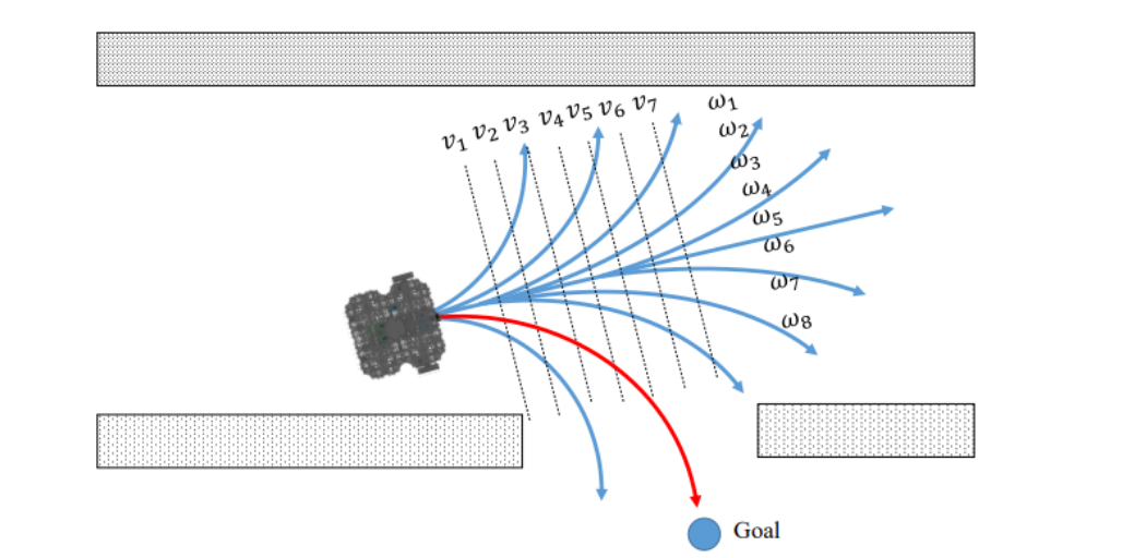 로봇이 현재 속도와 회전속도를 조합하여 최적의 속도를 계산하고 장애물을 회피하면서 목표 지점까지 이동하는 경로 계획(Patg Planning)알고리즘이다. 경로를 전체적으로 미리 계산하는 방식(Global Planning)이 아닌, 실시간으로 이동 방향을 결정하는 로컬(Local Planning) 방식이다.