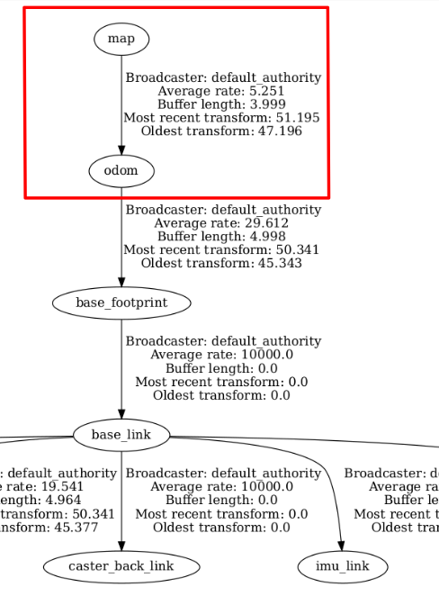 프레임 구조를 TF Tree로 표현하면 map → odom → base_footprint → base_link 로 움직이는 걸 확인할 수 있다.