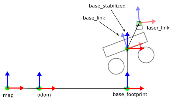 이처럼 로봇이 이동 할 때 각 센서 프레임의 위치와 방향도 변하게 된다. 이때, 고정된 기준 프레임(base_link)를 사용하지 않으면 로봇의 움직임에 따라 모든 센서 데이터를 계속 계산하고 변환해야 하는 번거로움이 생긴다.