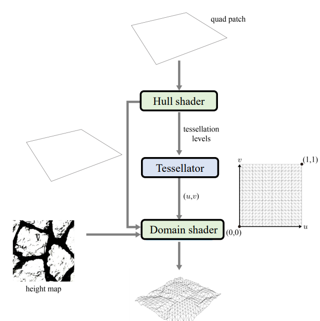 - Domain shader : UV coordinate를 이용해서 위치 결정