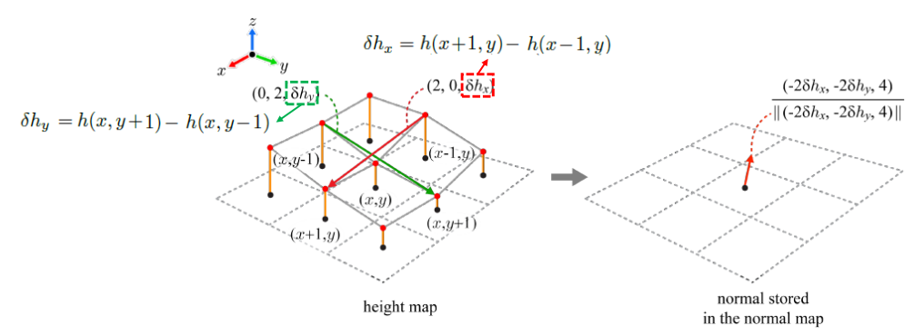 - height map으로 normal map을 만들 수 있다.