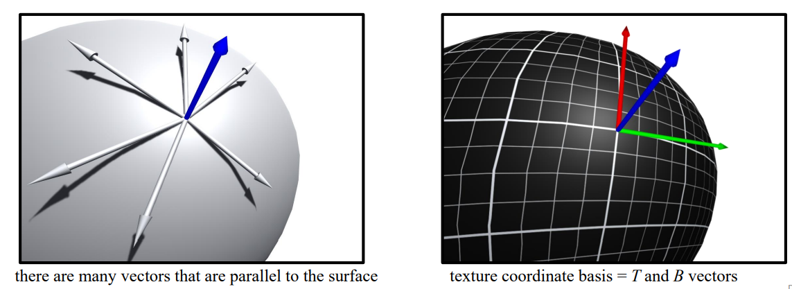 - 수많은 벡터 중 texture coordinate basis에 맞게 T와 B를 선택한다.