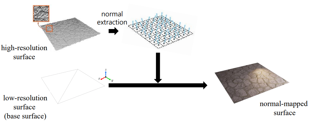 normal map = 고해상도의 normal을 texture로 저장한 것. (x,y,z)의 형태