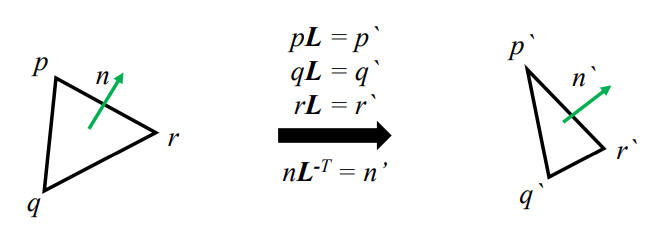 if L이 non-uniform scaling을 포함한다면 surface normal에는 적용이 되지 않을 수도 있다.