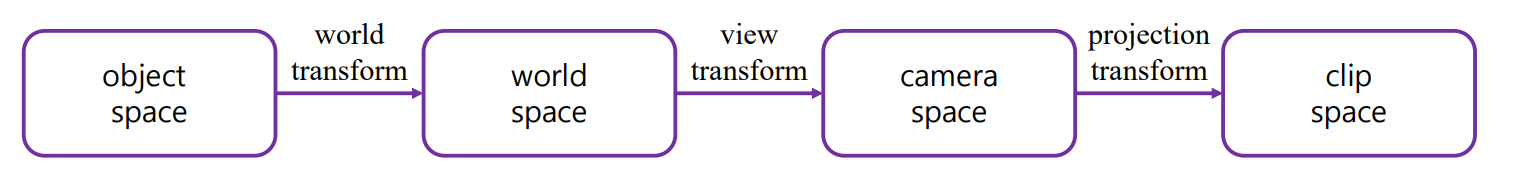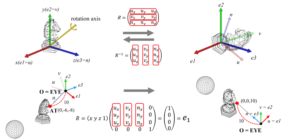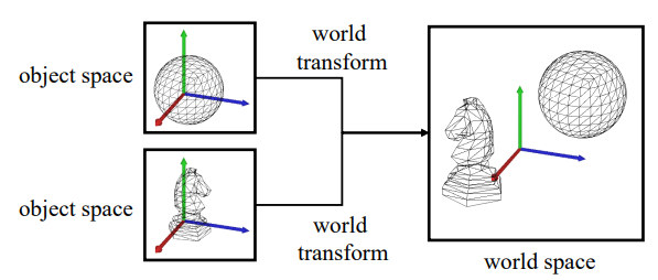 - World transform : 모든 model들을 assemble -> 하나의 coordinate system으로 합치는 것