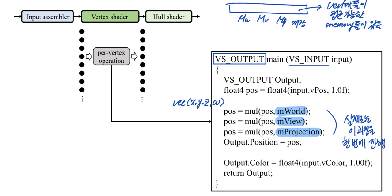 - 각 vertex 마다 한번씩 동작한다.