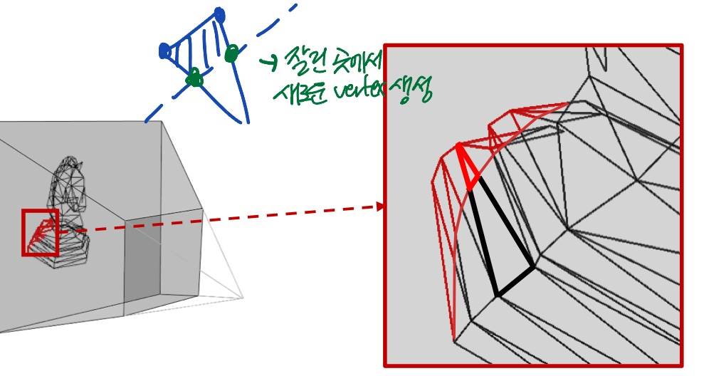 - pyramidal view frustum 은 clipping에 쓰이지 않는다.