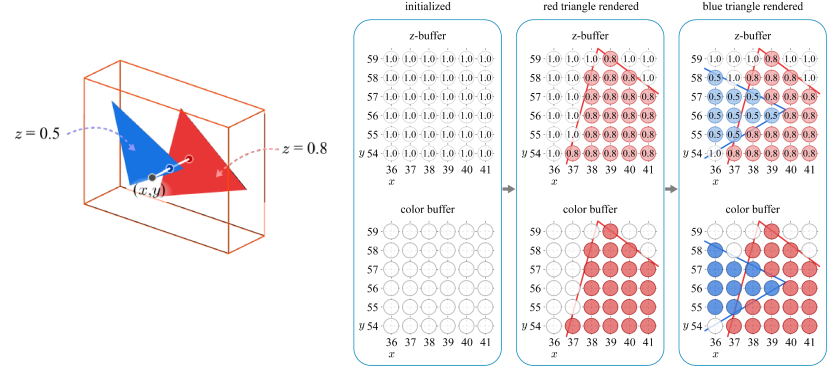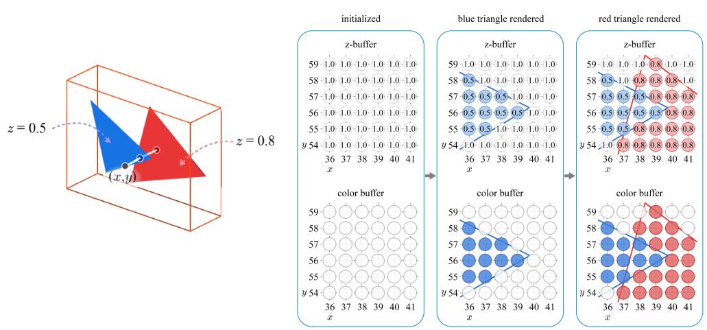 if) 파란색 triangle이 먼저 rednering -> 빨간색이 뒤에 있어서 그냥 버려져 버림