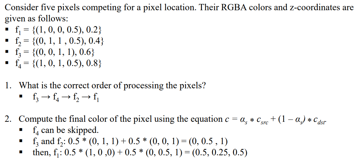 - 하지만 표면이 투명한 경우 pixel value가 combine되어야 한다. 단순히 교체 & 버리기로 안됨.
