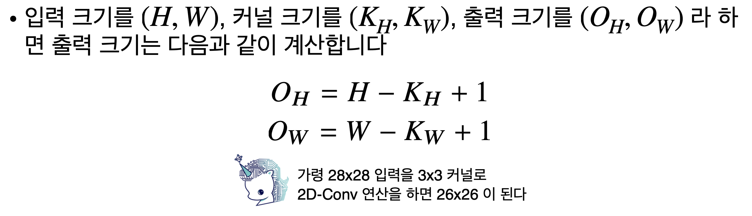 다음으로 중요한 것은 convolution 연산 후 출력되는 함수의 크기가 어떻게 되는지