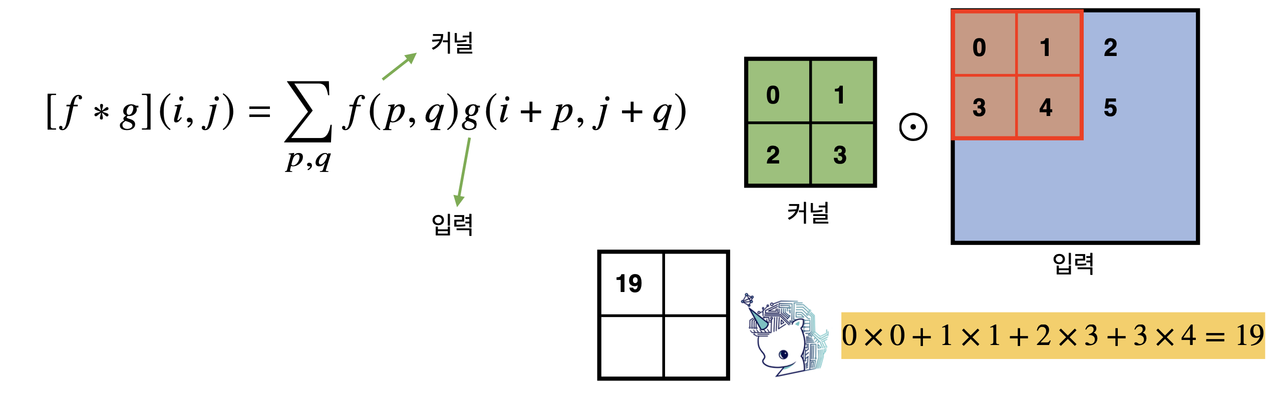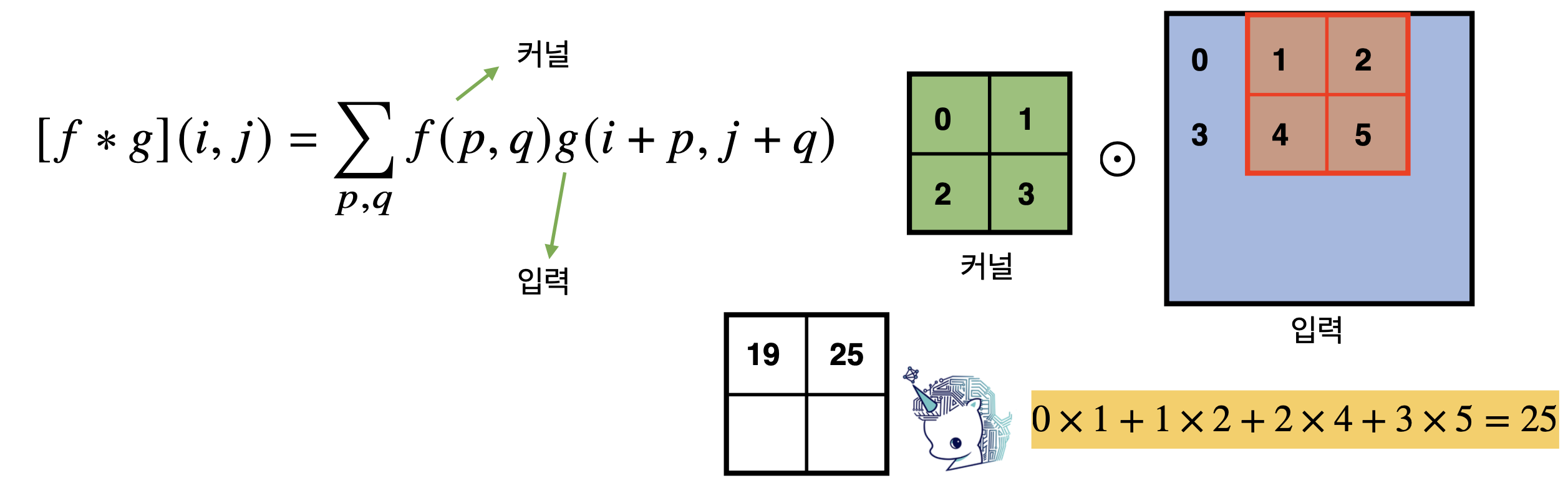 convolution 연산의 수학적 의미는 신호(signal)를 커널(kernel)을 이용해 국소적으로 증폭 또는 감소