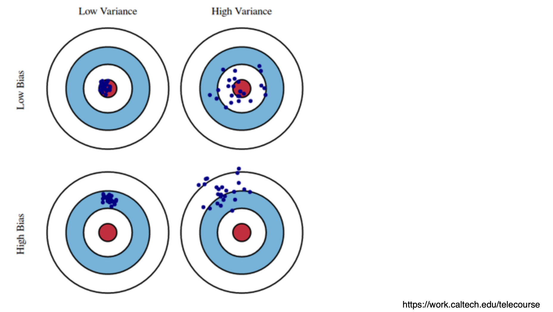아래는 모델 성능 평가를 위한 개념이다. 결론적으로 보자면, low bias + low variance가 최고다.