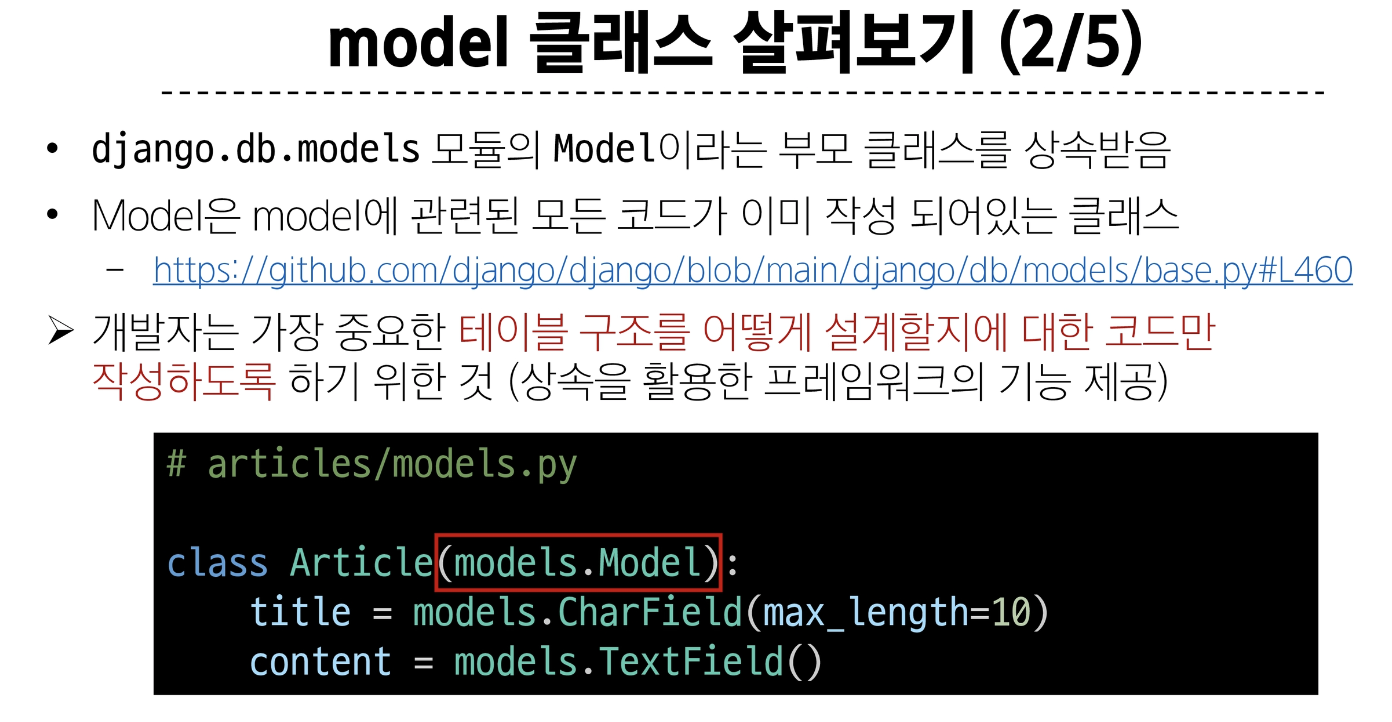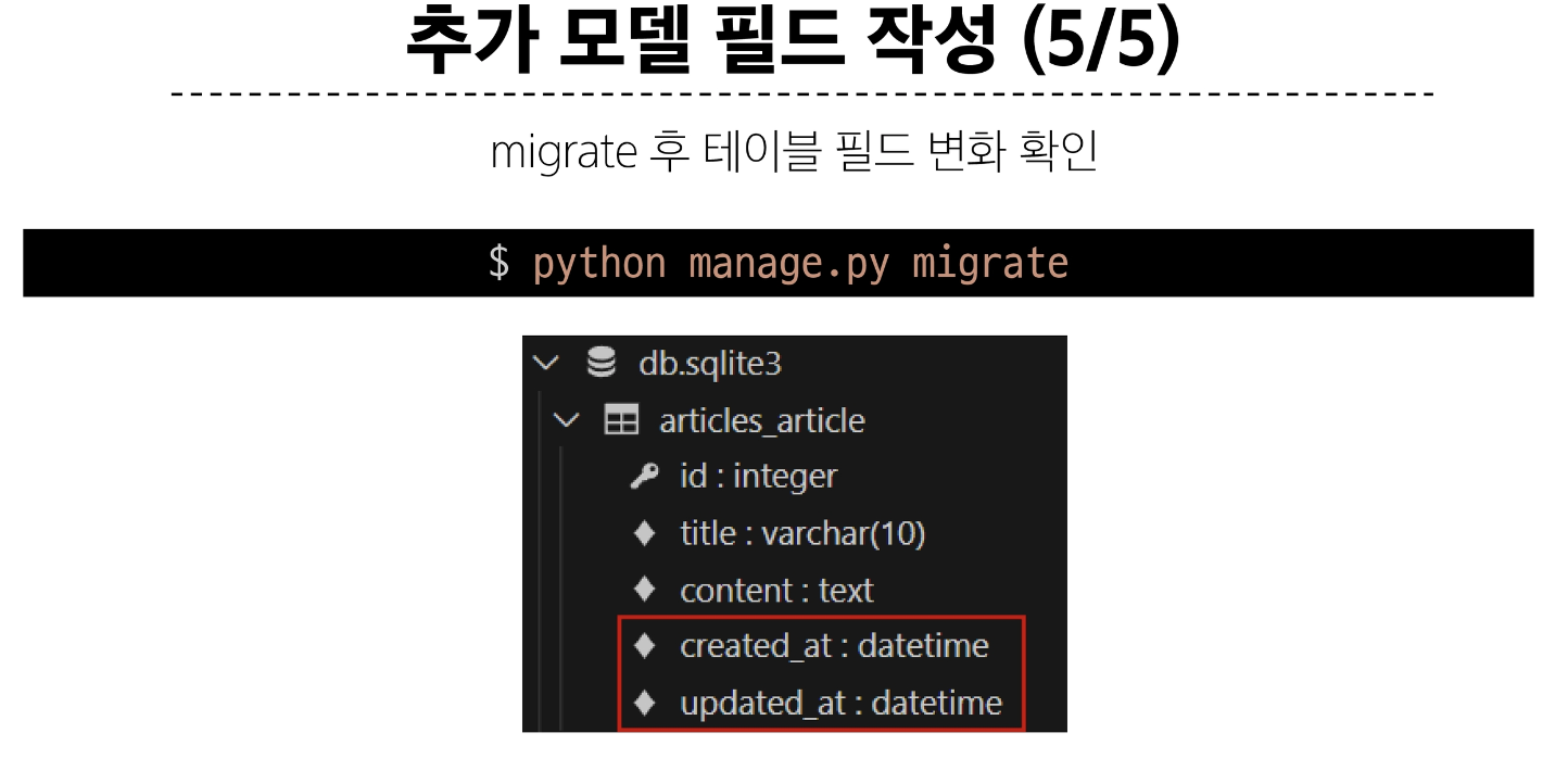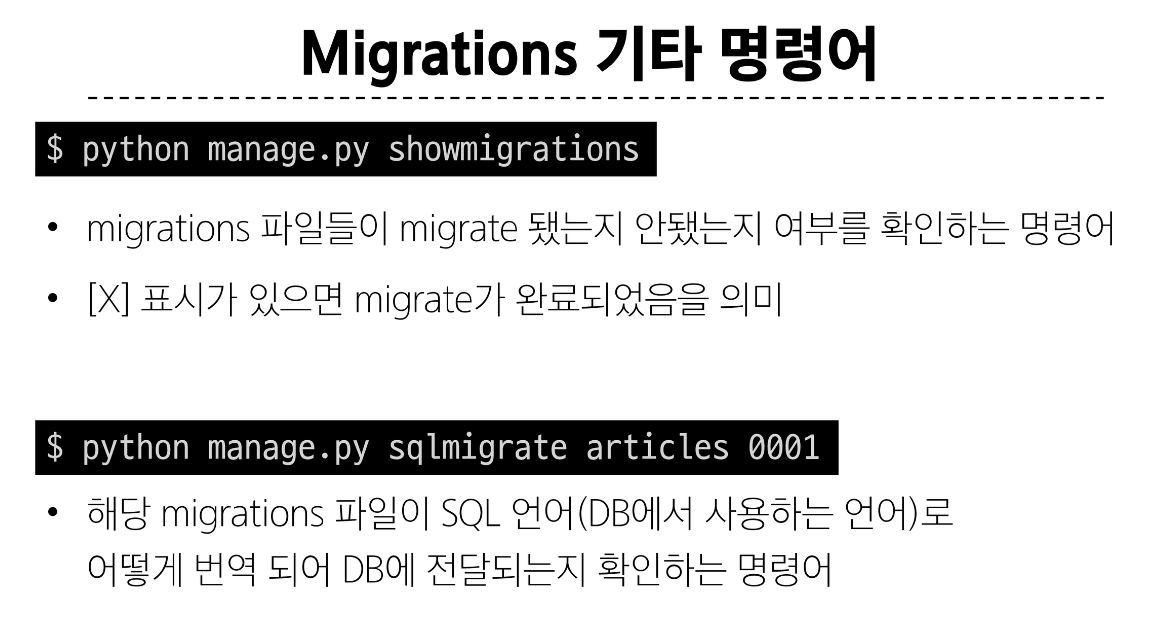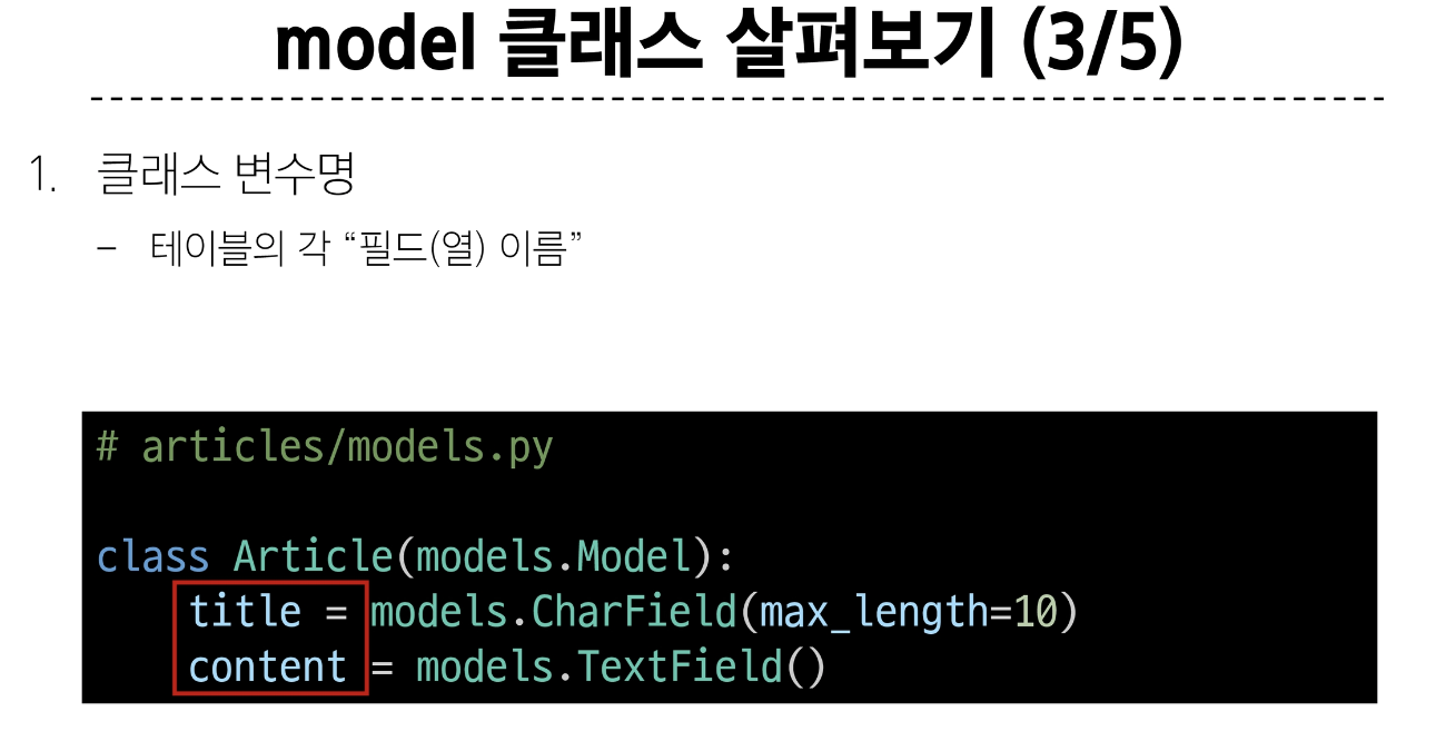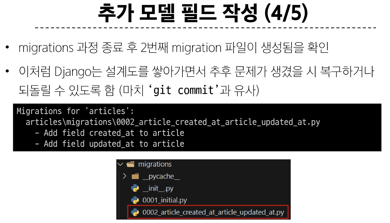 - model class 변경 -> 2. makemigrations -> 3. migrate