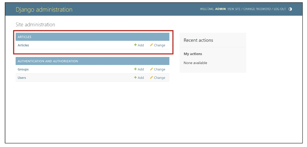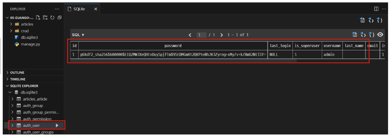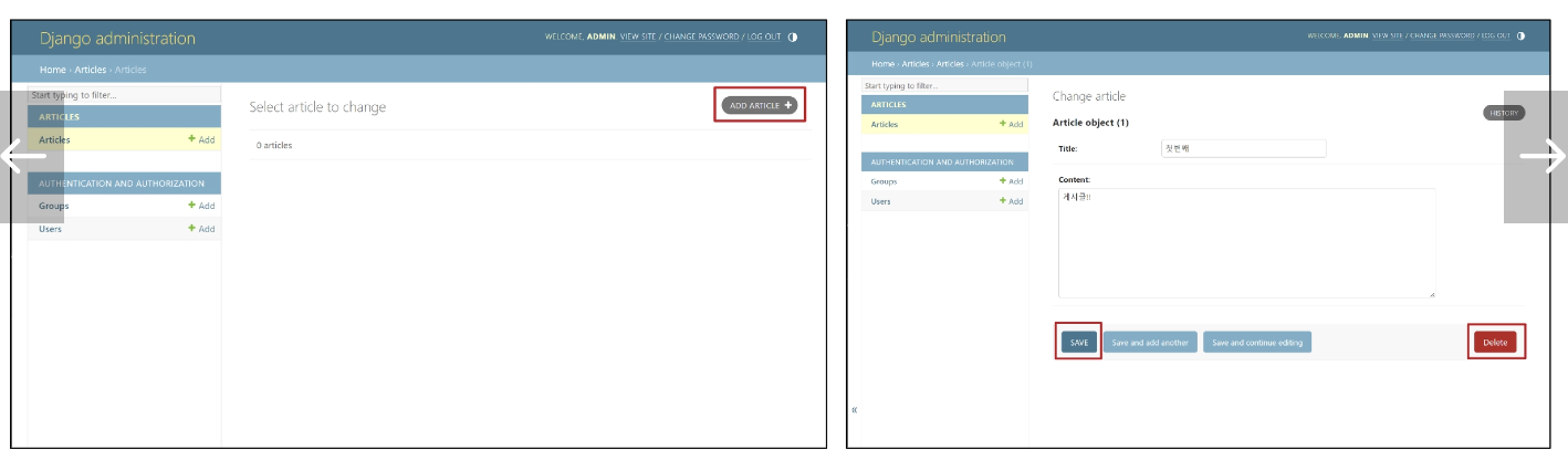 - admin.py에 작성한 모델 클래스를 등록해야만 admin site에서 확인 가능
