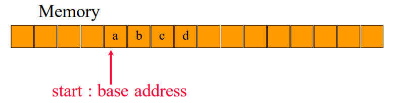 메모리 내 연속적인 공간에 저장됨.-