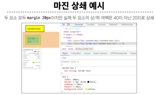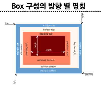 : 내용(content), 안쪽 여백(padding), 테두리(border), 외부 간격(margin)으로 구성되는 개념