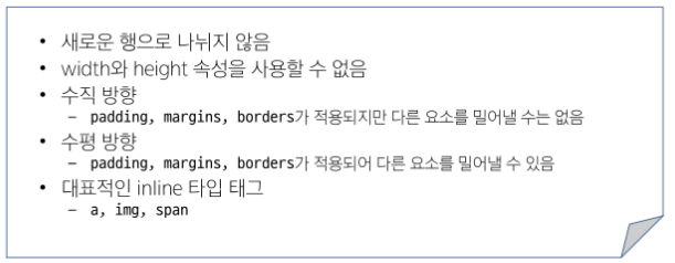 : CSS를 적용하지 않았을 경우, 웹페이지 요소가 기본적으로 배치되는 방향