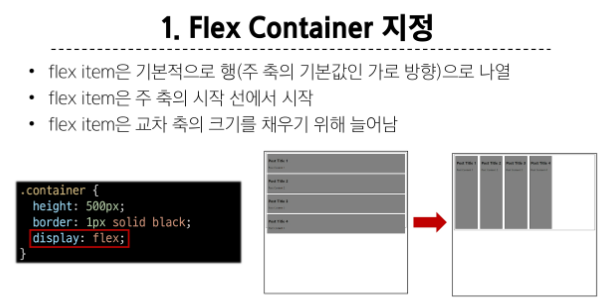 이 컨테이너의 1차 자식 요소들이 Flex item이 됨