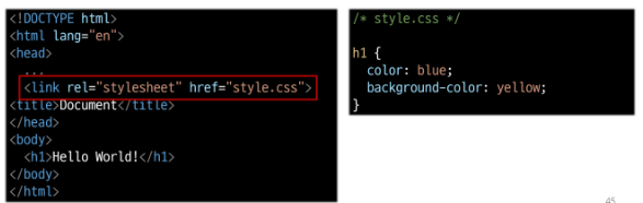 : 별도의 CSS 파일 생성 후 HTML link 태그를 사용해 불러오기