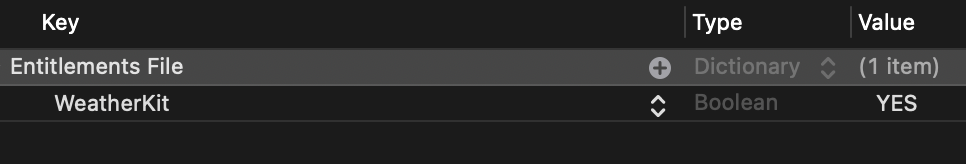 Capeng.entitlements 파일은 앱 개발 과정에서 특별한 자격이나 권리를 설정하는 데 사용된다. 이 파일은 개발자가 특정 시스템 기능에 대한 액세스 권한을 앱에 부여하고자 할 때 필요하다. 예를 들어, WeatherKit과 같은 서비스를 사용하기 위해서는, 해당 서비스에 접근할 수 있는 권한을 entitlements 파일을 통해 명시해야 한다.