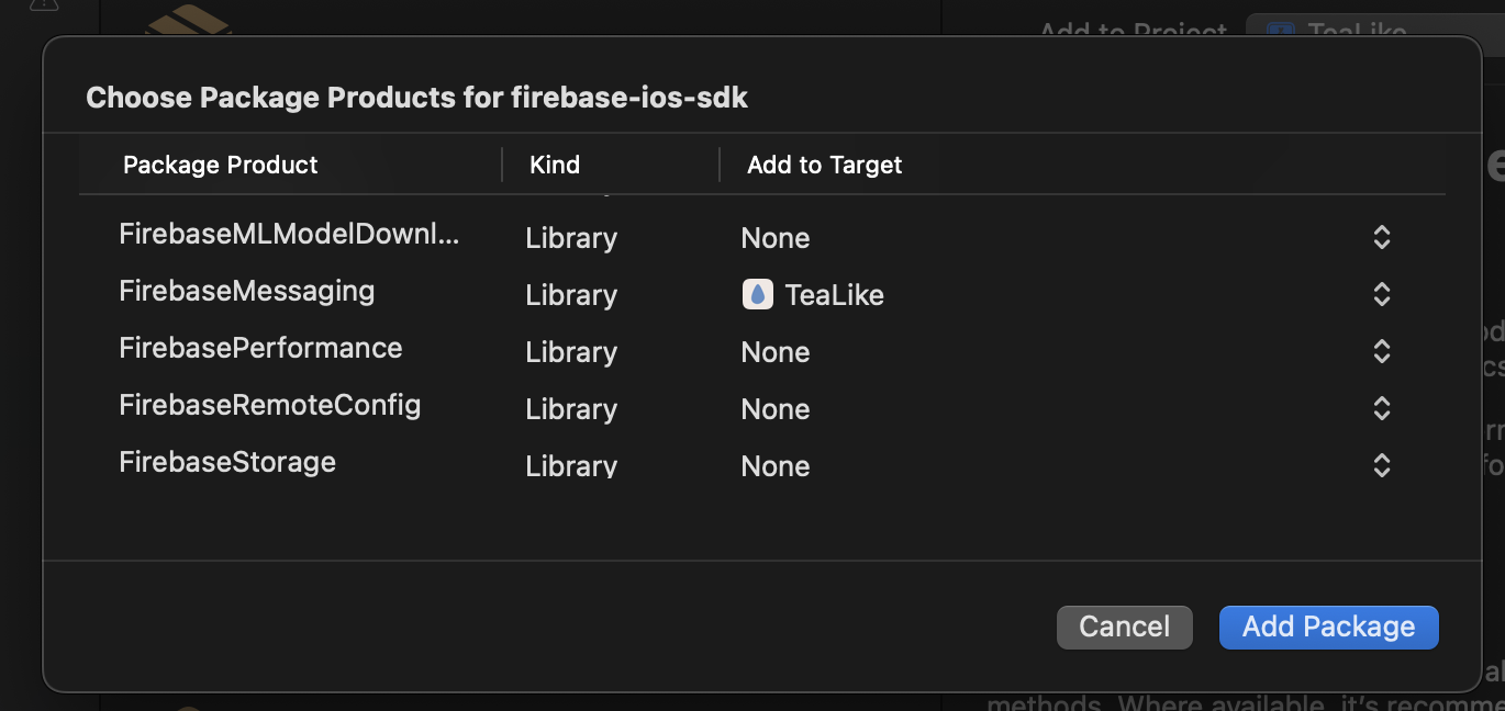먼저, Xcode 프로젝트에 FCM 관련 메시지 패키지를 추가하였다.