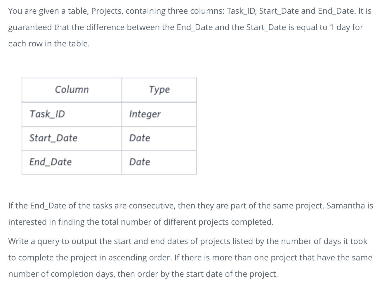 WHERE END_DATE NOT IN (SELECT distinct START_DATE FROM PROJECTS)