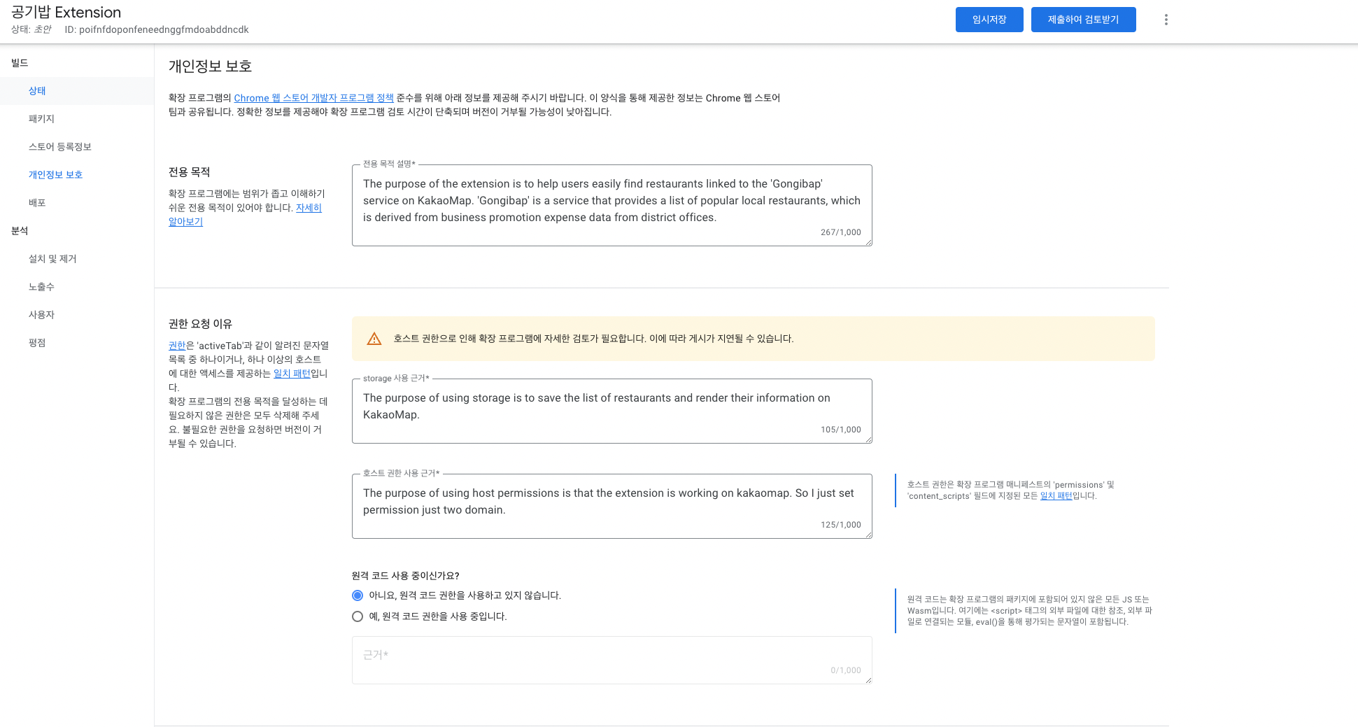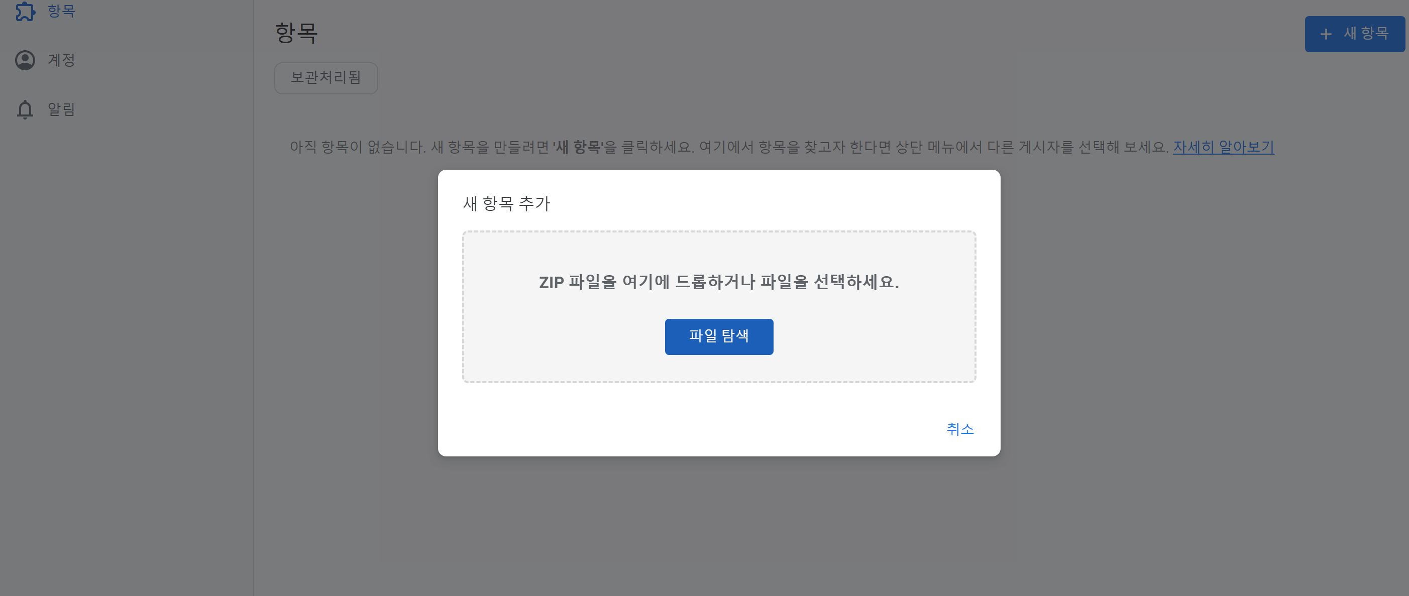 그 이후 항목에 들어가 새 항목 클릭하여, 배포할 extension을 zip 파일로 압축해서 업로드한다.