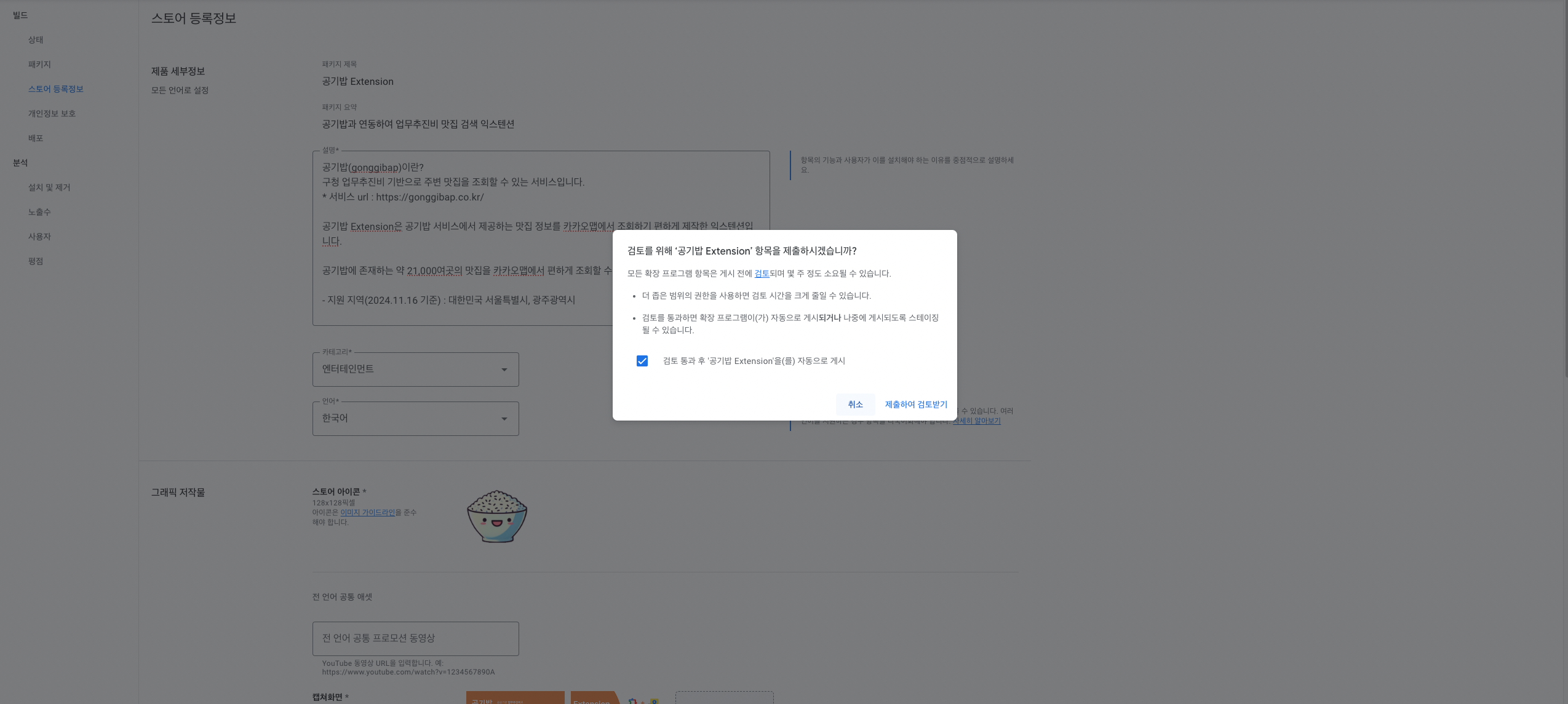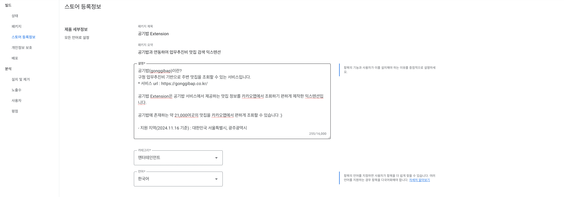 스토어 등록정보를 채워준다.