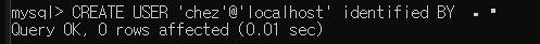 여기서도 '%' 준사람은 '%' 로, 'localhost' 는 'localhost'로 줘야 한다.